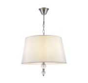 Металлическая арматура в двух оттенках: латунь и никель. Классическая форма плафона в виде свечи. Торшер и настольная лампа имеют тканевые абажуры. Белые – для арматуры цвета никель, оттенка кремовый шампань – для латунной. Декор – прозрачные хрустальные подвесы каплевидной формы. Торшер с цоколем Е27, лампа, бра и люстры – Е14.