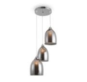 Простой каркас из никелированного металла образован сочетанием горизонтальных и вертикальных линий. Он украшает декоративные блюдца из прессованного стекла. Отдельного внимания в конструкции светильников заслуживают абажуры, сделанные из ткани на ПВХ. Они добавляют светильникам элегантности и тепла.