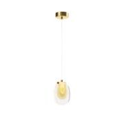 Цвет металлической арматуры — латунь с сатинированным финишем, плафоны — прозрачное стекло. Источник света: LED. Цветовая температура светильников 3000К, угол рассеивания — 120 градусов. Настенные бра и подвесные светильники оснащены регулируемым проводом длиной до 3 метров, что позволяет использовать их в помещениях с высокими потолками.