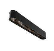 Материал изготовления корпуса — алюминий. Выполнен в черном цвете или в цвете латунь. Источник света – светодиодные лампы бренда Osram мощностью 12В со следующими характеристиками: угол рассеивания - 40°, индекс цветопередачи выше Ra 90, цветовая температура - 3000К. Наличие в конструкции специальной линзованной оптики отвечает за формирование точно сфокусированного луча для яркого светового акцента. Общая длина светильника 232 мм. Доступна функция диммирования при установки соответствующих блоков питания.